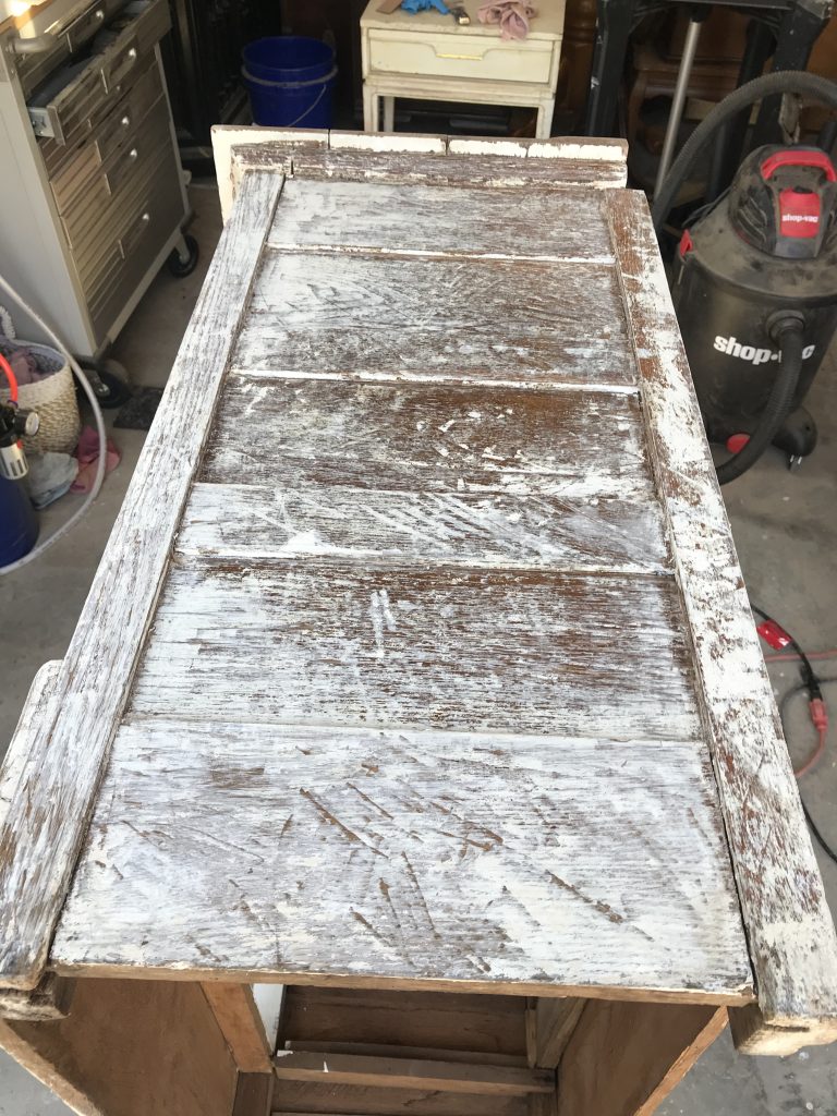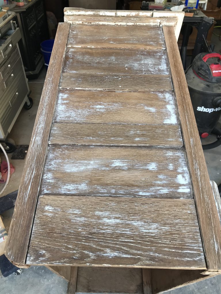 Boy, I gotta tell you, this piece fought me every step of the way! I thought that I would just sand off the old paint and go from there. Whoa, was I wrong! This piece had several layers of oil based paint and sanding it just seemed to “polish” the paint. It wasn’t going anywhere like that. 😏 I really don’t like to use stripper because I find it to be a stinky, gloppy mess. I had no choice here, I had to resort to the least offensive stripper that I have tried – Citristrip https://amzn.to/308Ydid. The process is fairly simple, just use a disposable brush – 3 inch, 24 pack https://amzn.to/2WNntJf to LIBERALLY apply the gel. I have found the most effective method is to cover the piece with plastic wrap for several hours (it could be overnight), making sure that it does not dry. The stripper will bubble up when it’s ready to be scraped off…