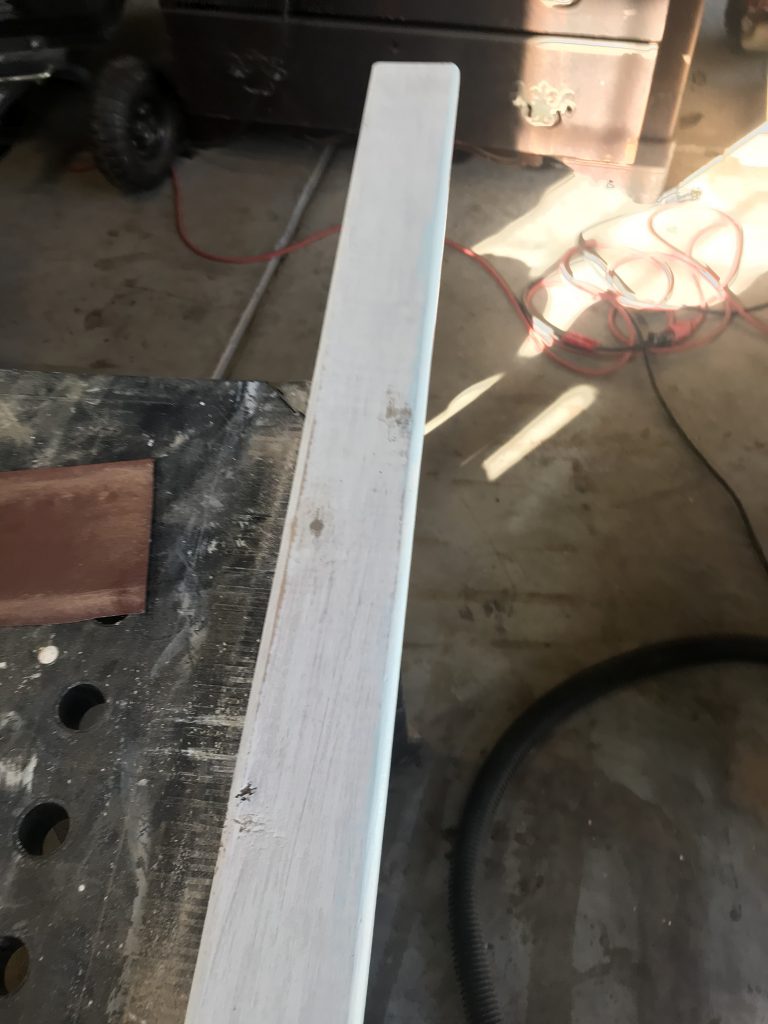 The back of the chest looked like it once had a back piece that was now missing. I had some 1×3 wood on hand, so I measured and cut the wood to size. It had quiet a few knots in it, so I filled those with Dixie Belle Mud https://amzn.to/2zfMdRB prior to priming. I am definitely not an exact measure kind of gal, so I pondered the best way to line up the new back piece with the existing screw holes. 🧐 I really don’t know what the “expert” way to do this would be, but I got creative. I painted around the screw holes and while it was wet, pressed the back piece into place. The result was perfect circles that I could drill through, providing an exact line up with the preexisting screw holes. Brilliant! 🤓 🤩