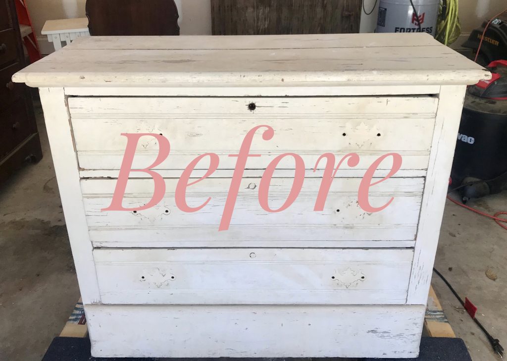 I found this OLD, handmade chest of drawers during the Liberty Antiques Festival in Staley, NC. It was not in the actual grounds of the event, but in a field leading up to it. There it sat, all worn out and beat up, but what I saw was potential! As I’ve said before, I despise being wasteful, so I love finding these solid (although not pretty) pieces that have so much more life left in them! It was quite wonky, being handmade, but I knew that I could fix it up into something fabulous and give it another hundred years of use!