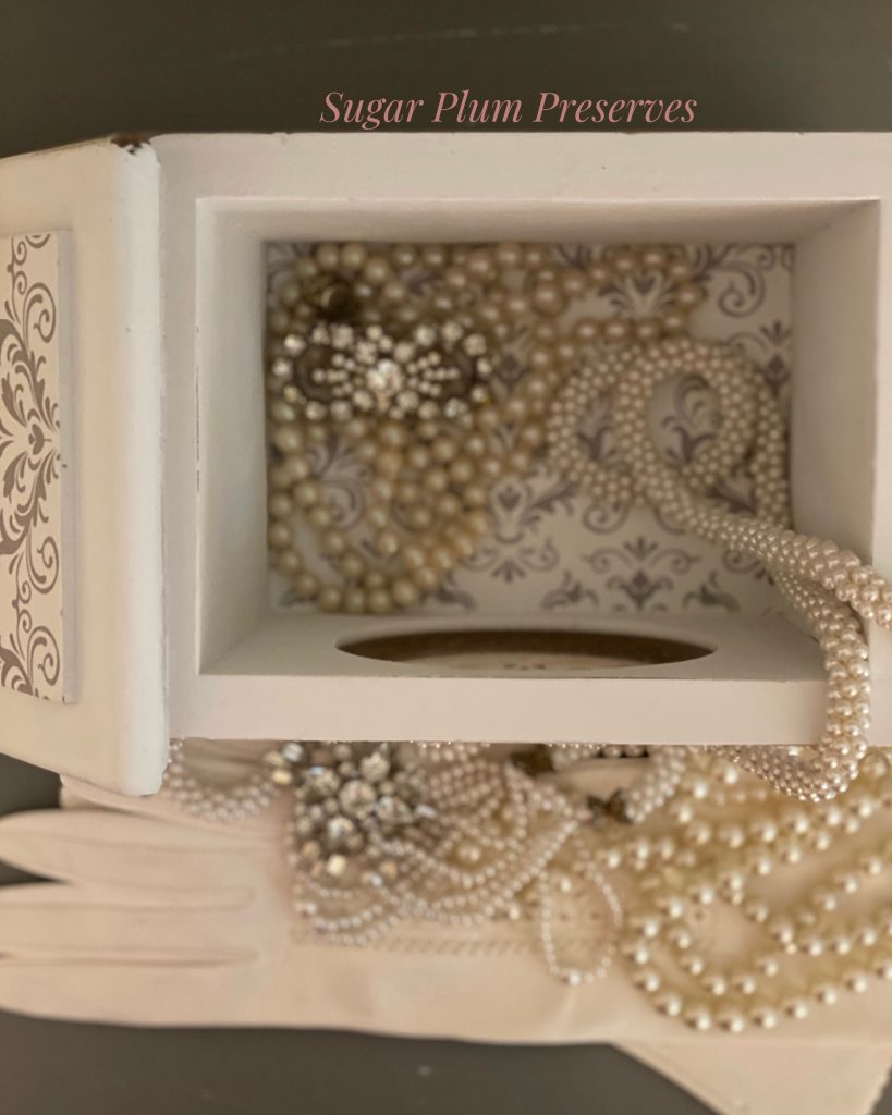 Voila! An ugly thrift store dated recipe box is now a pretty, glamorous trinket box! 👑 Whatta you think? Will you think twice next time you pass up the wood aisle in the thrift store?