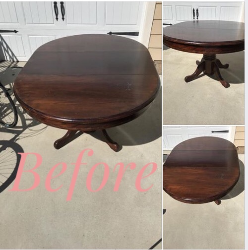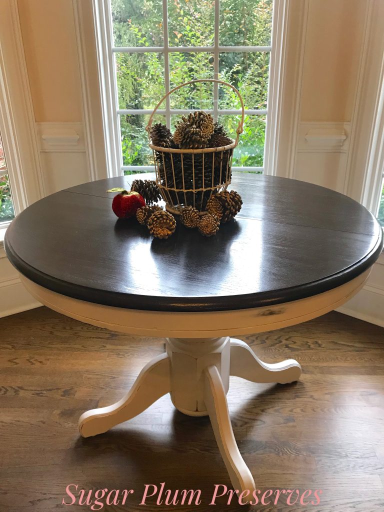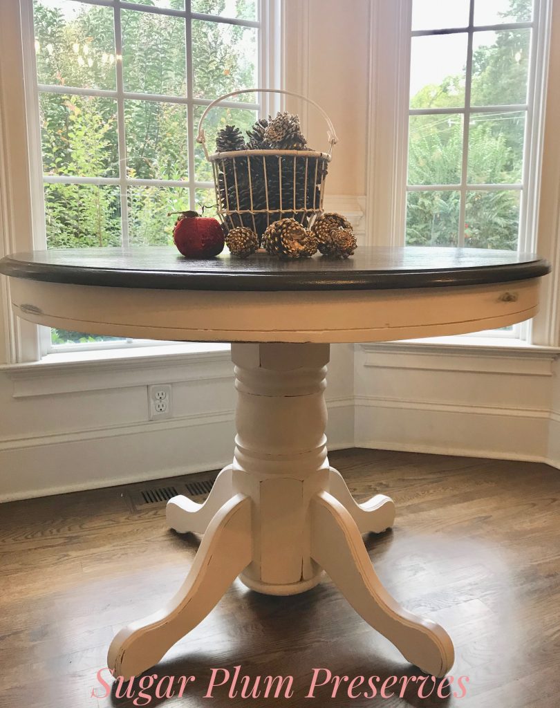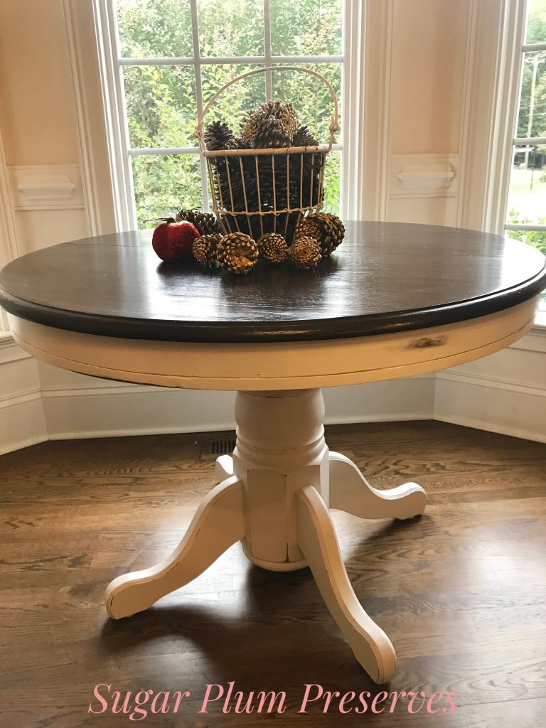 This weeks transformation is a very popular look right now; the base of the table painted, while the top is stained.