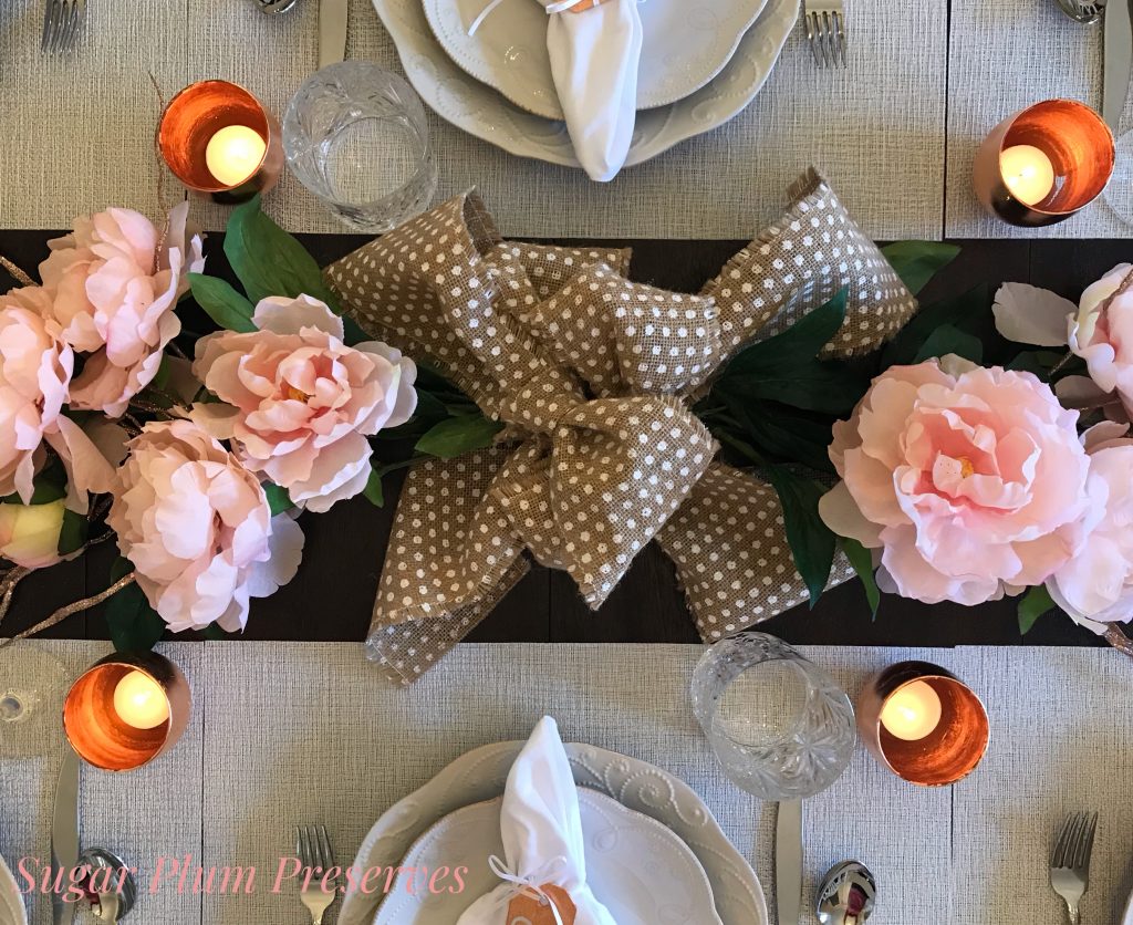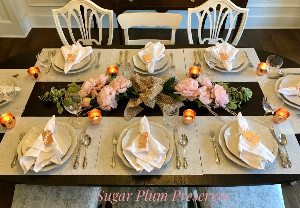 Easy DIY Holiday Tablescape with Rose Gold Leaf