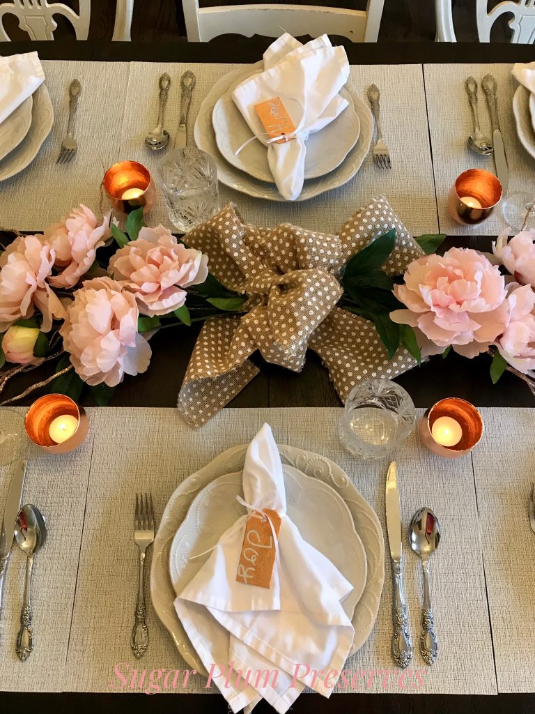 Last Thanksgiving, I had to come up with a quick and easy tablescape for our Thanksgiving Day guests. I did not have a lot of time to create something and I didn’t want to spend a lot of money on it, so I got creative.