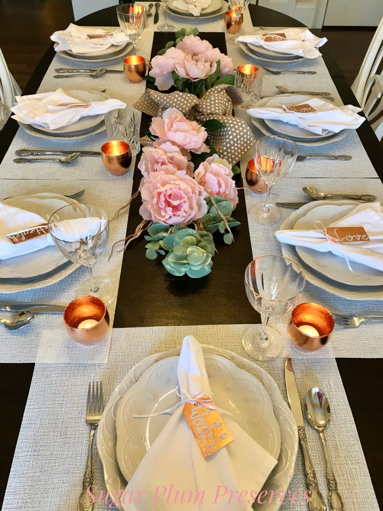 And that’s it! A simple, fast, beautiful tablescape that engages your guests and helps them to reflect on what Thanksgiving is all about. Hopefully this idea will help reduce the stress of the holiday season and allow you to enjoy more time with your loved ones. 💝