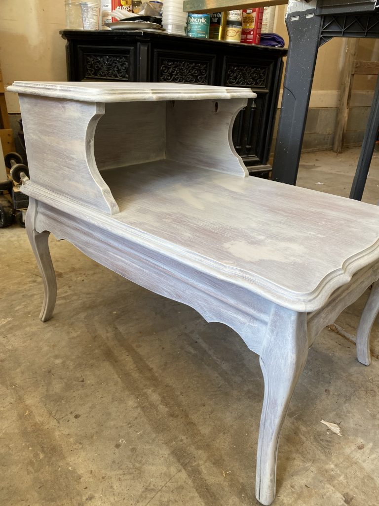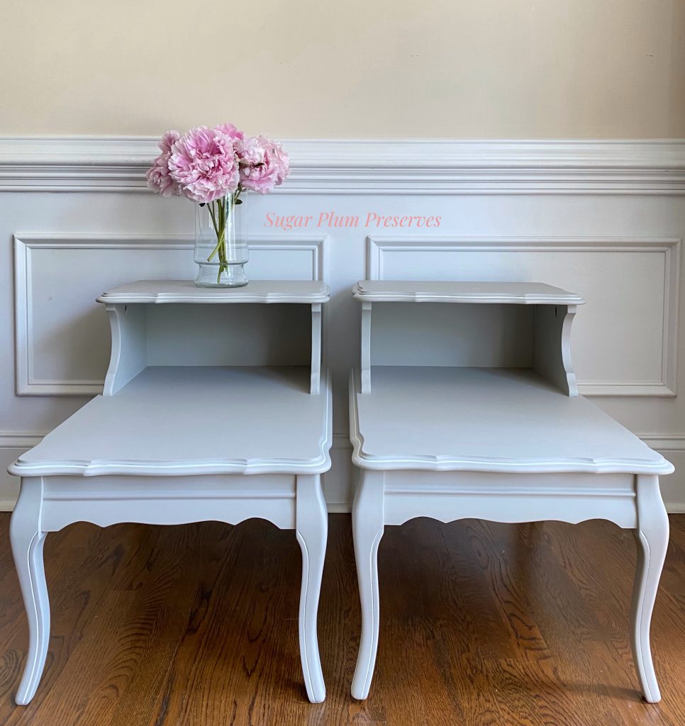 This week’s feature is a cute little set of vintage French Provincial end tables.
