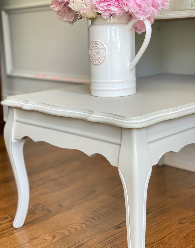 So here is the part that I surprised myself with ~ the paint color. I was drawn to this sample paint that I had on hand from Lowes. It was called Frappe by Valspar. It is the most lovely extra light coffee color (maybe?). When I looked at it, I thought of crisp linen pillows with a clean white piping stitched around them. And that was it. That was vibe that the tables wanted to have, and who was I to argue? 😜 I can’t say that I didn’t pause though ~ umm what about midnight blue with gold metallic, accenting all of those delicious curvy details?? No? Okay, how about extra girly with bright pink and gold leaf?? No? Still want crisp and clean? Alllllllright. 😤 I painted each table with three coats of paint using my favorite brushes, Zibra angled 2 inch stubby https://bit.ly/3oI0V9z, sanding lightly between each coat with 400 grit sandpaper. To make it easier on myself when painting the details, I decided to use a chalk paint pen https://amzn.to/2Id5Huw instead of a brush and paint. It was much faster and I was able to keep a straight line much easier. Brilliant! If I do say so myself! 🤓 I really wanted that crisp, clean look, so I decided to seal the tables using my sprayer, https://amzn.to/399ETG9. I thinned the Minwax topcoat https://amzn.to/36h3kys slightly with water and sprayed several thin coats to keep it smooth and drip free. The sprayer can take a bit of practice but once you get the hang of it, it provides a dream finish! What do you think? Did I make the right color choice? I think they are neutral enough to go with any decor, but glamorous enough to elevate the look of any room!