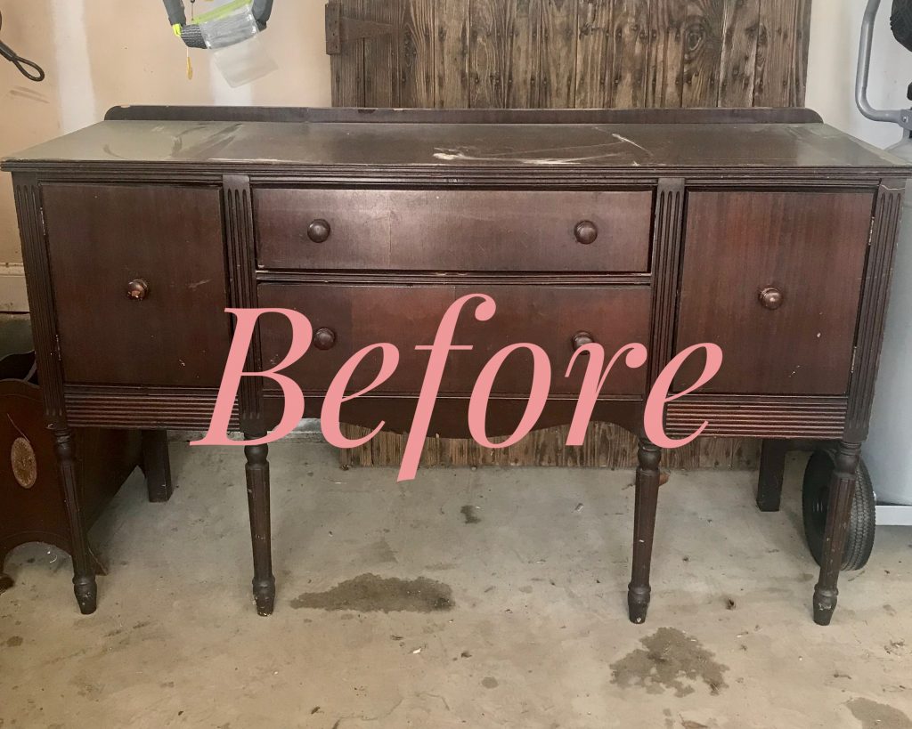 I turned my attention to the top of the buffet. I waited until the end to stain it because I wasn’t sure about the color. Once it was sanded down, it had a pretty reddish hue to it. I wanted to see all the colors together before I decided if I wanted to stain it. I ended up going with a Dark Walnut Stain, Minwax Dark Walnut Stain https://amzn.to/3e7D1h8, applied in long strokes with my favorite method, a Stain Applicator Pad https://amzn.to/2Xfun9d. After a few coats, with ample drying time between coats and after, I sealed the whole piece with Minwax Water Based Polycrylic, Satin https://amzn.to/3g7e7Qw, applied with my favorite method, Car Detail Sponge https://amzn.to/2ANgY0K. What do you think? Definitely the right choice!