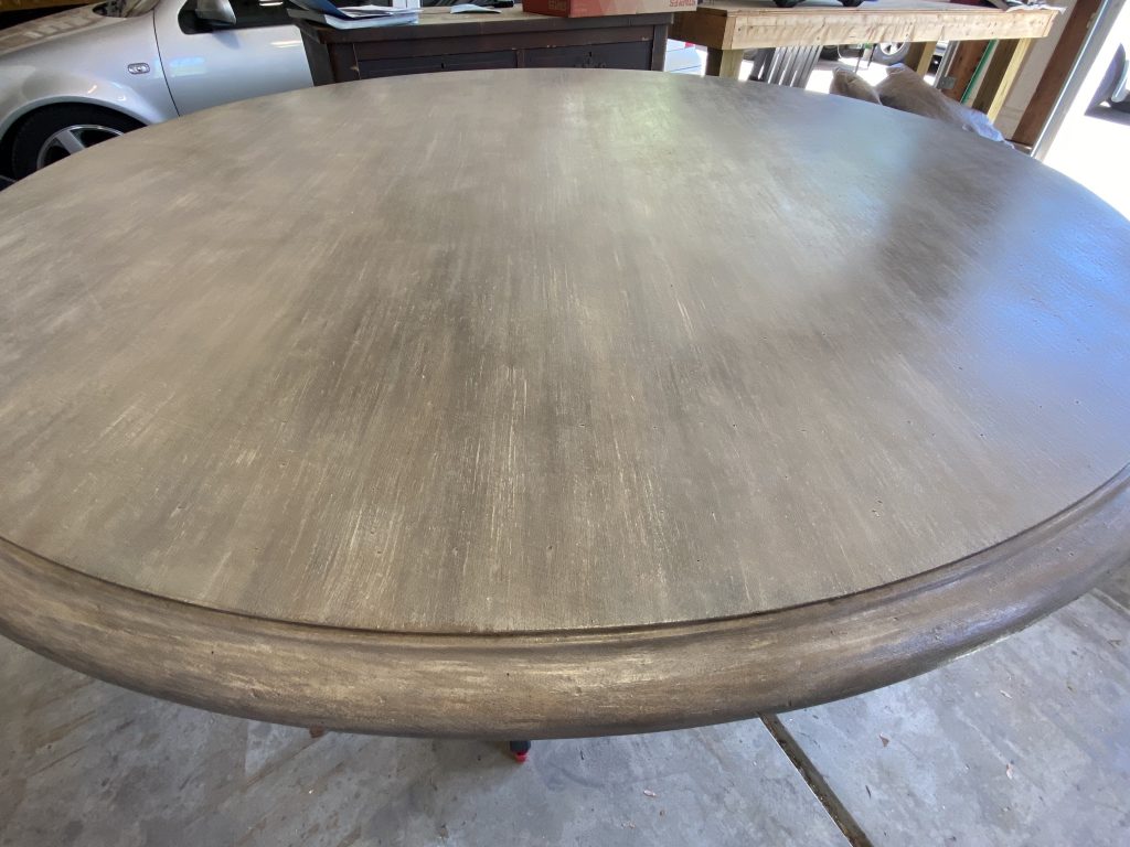 I was satisfied with this finish, as it had depth, texture, and looked weathered. I will say, it took several layers of dry brushing and wax to give the illusion of weathered wood and to camouflage the compass inlay. Again, if I were to do it again, I think I would do a layer of filler first and then use paint to create the weathered look. Overall, I think I pulled off the Restoration Hardware look and the owner was thrilled with the piece. I call that a win! 💁🏻♀️