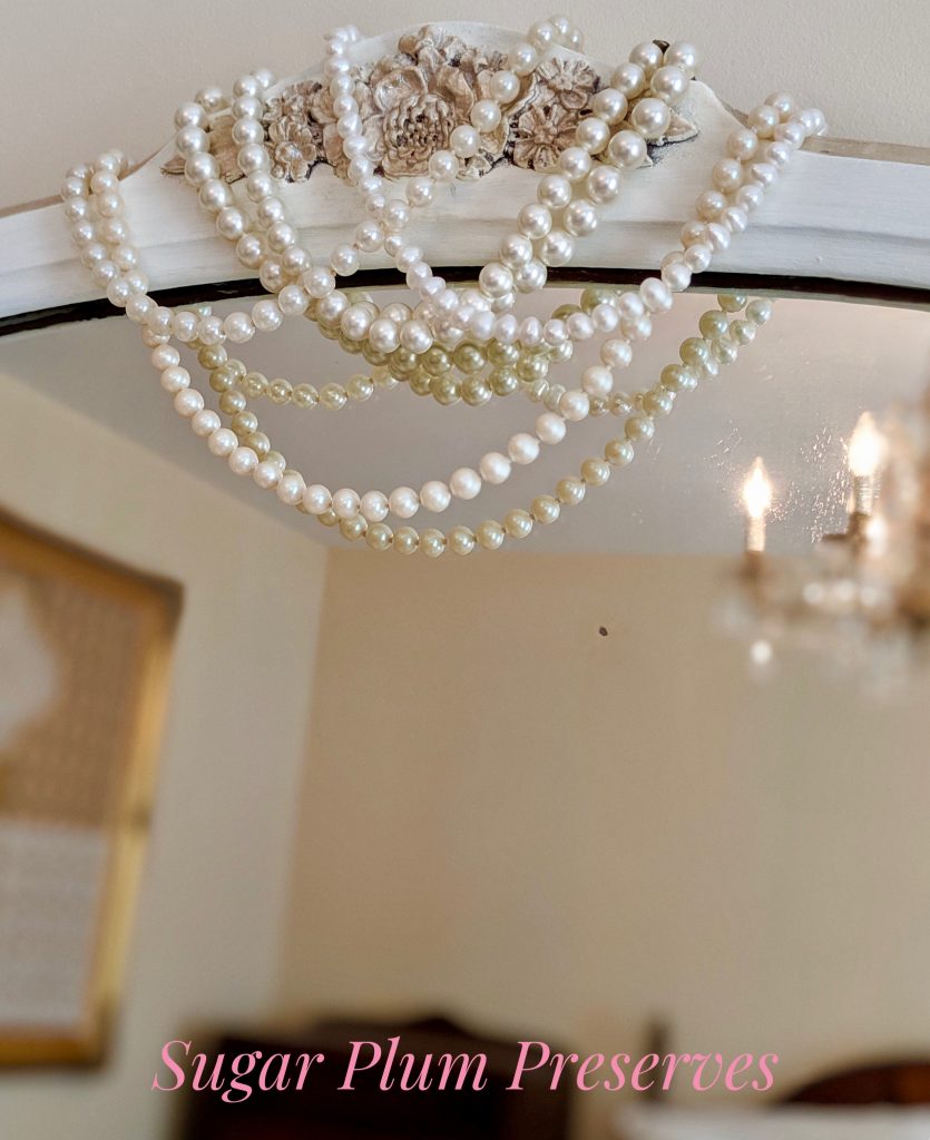 I ADORE vintage glamour! This piece is the embodiment of that vibe! I had a great canvas to work with, being not only a vanity, but an antique vanity! **Swoon** I can’t think of a piece that is more glamorous than that! 👸🏻 I love to imagine that a woman sat here in the 30’s putting on her make-up and powders and perfume from beautiful glass bottles, getting ready for a glamorous night on the town. 💖