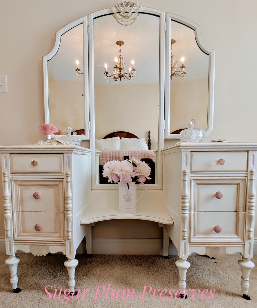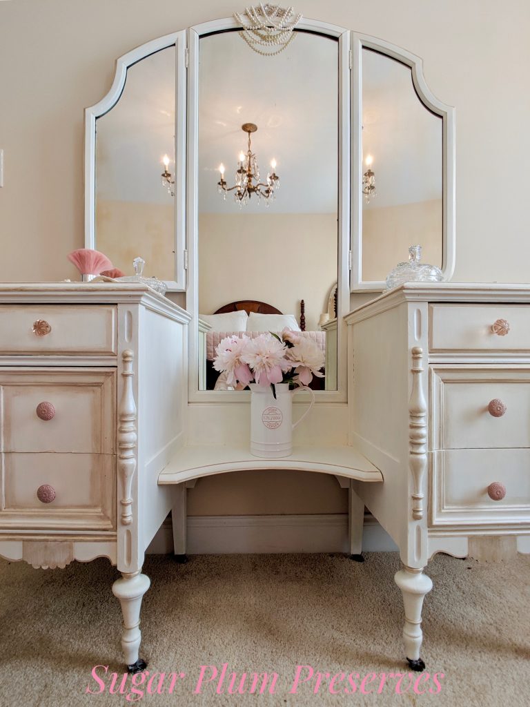And there you have it, Vintage Glamour! I am so happy to say that this vanity went to a 13 year old girl who loved make-up, had pink hair, and was into art and drama. It makes my heart happy to think of her creativity being able to soar while sitting at this vanity. 💞 ✨